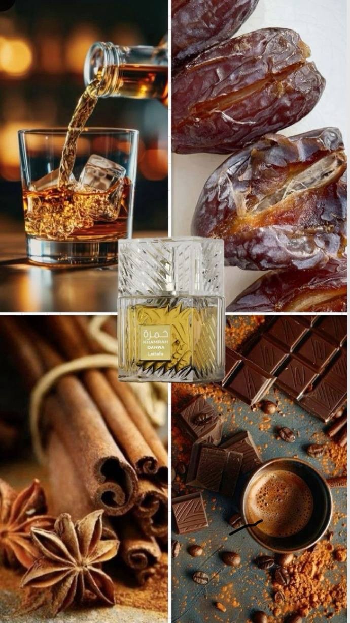 نوتات القلب: 🍫 🌸 قلب العطر عبارة عن مزيج دسم وحلو من الشوكولاتة، القرفة، والياسمين، لإحساس غني.